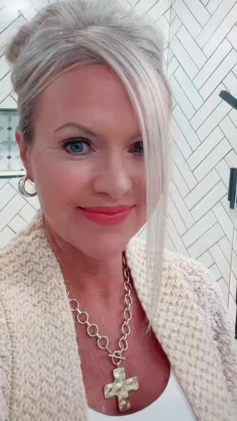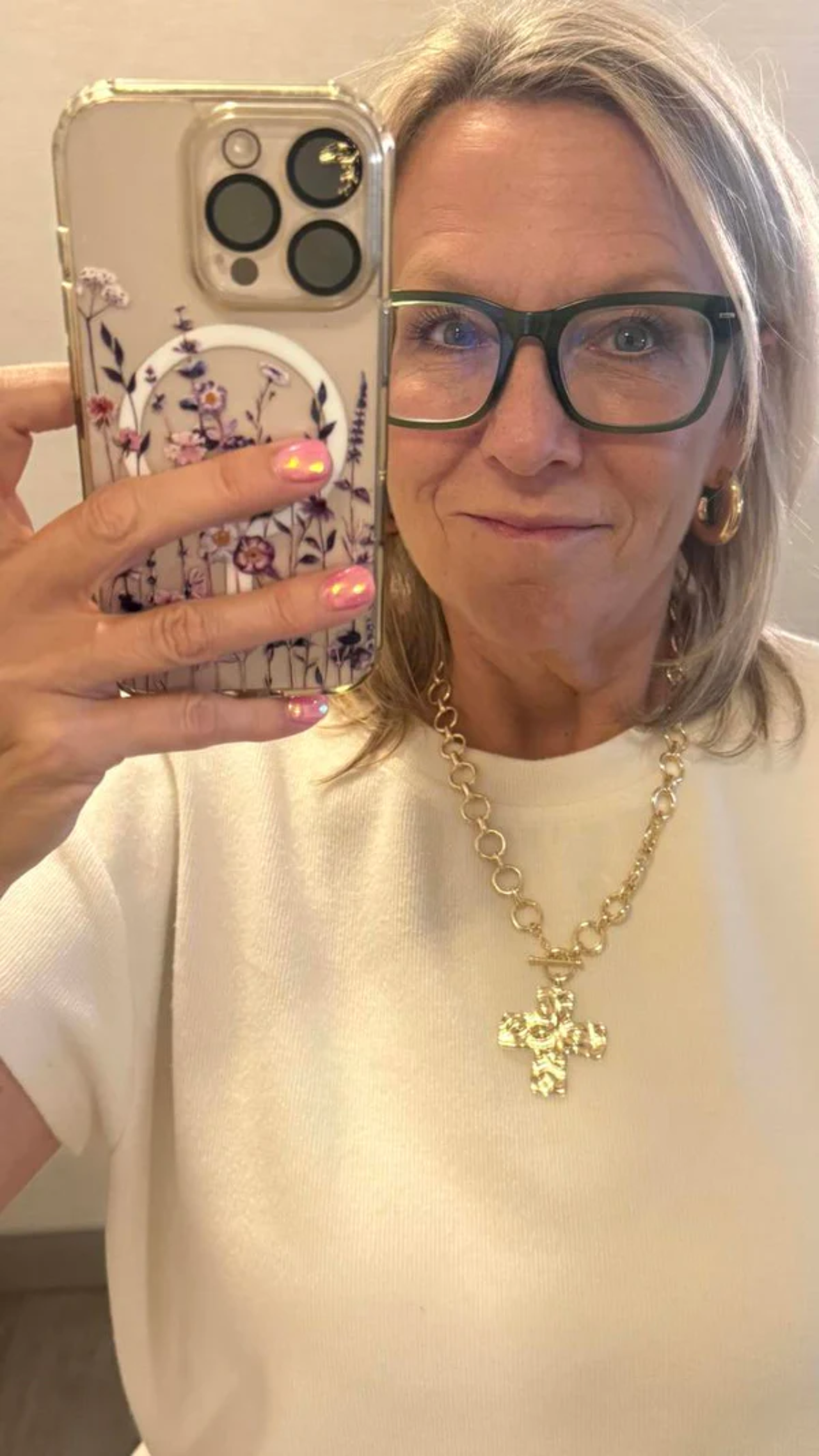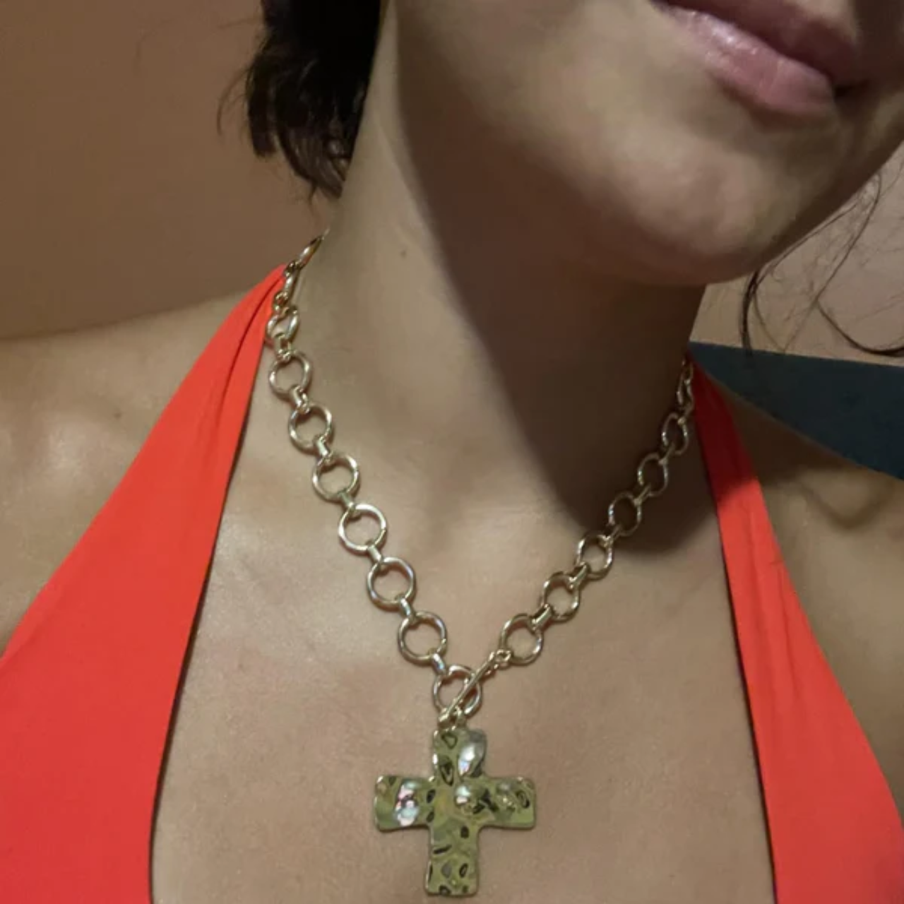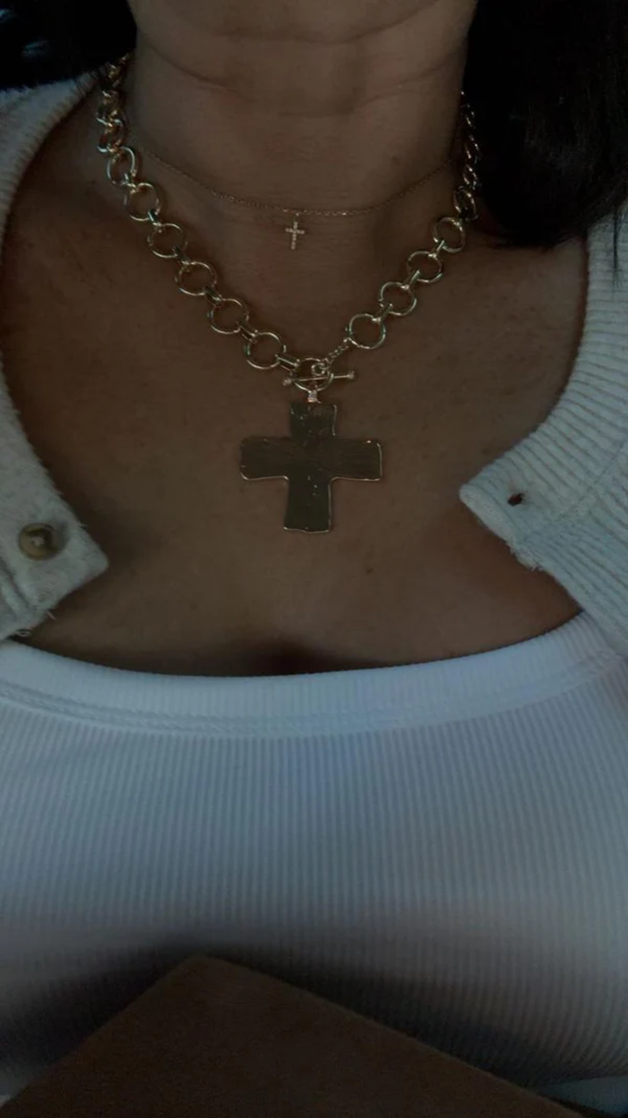 Cada detalle es simplemente perfecto. El colgante de cruz tiene esa textura única hecha a mano que lo hace sentir único. Lo he usado en la ducha, de vacaciones, incluso para dormir, y todavía brilla como nuevo. 10/10.
